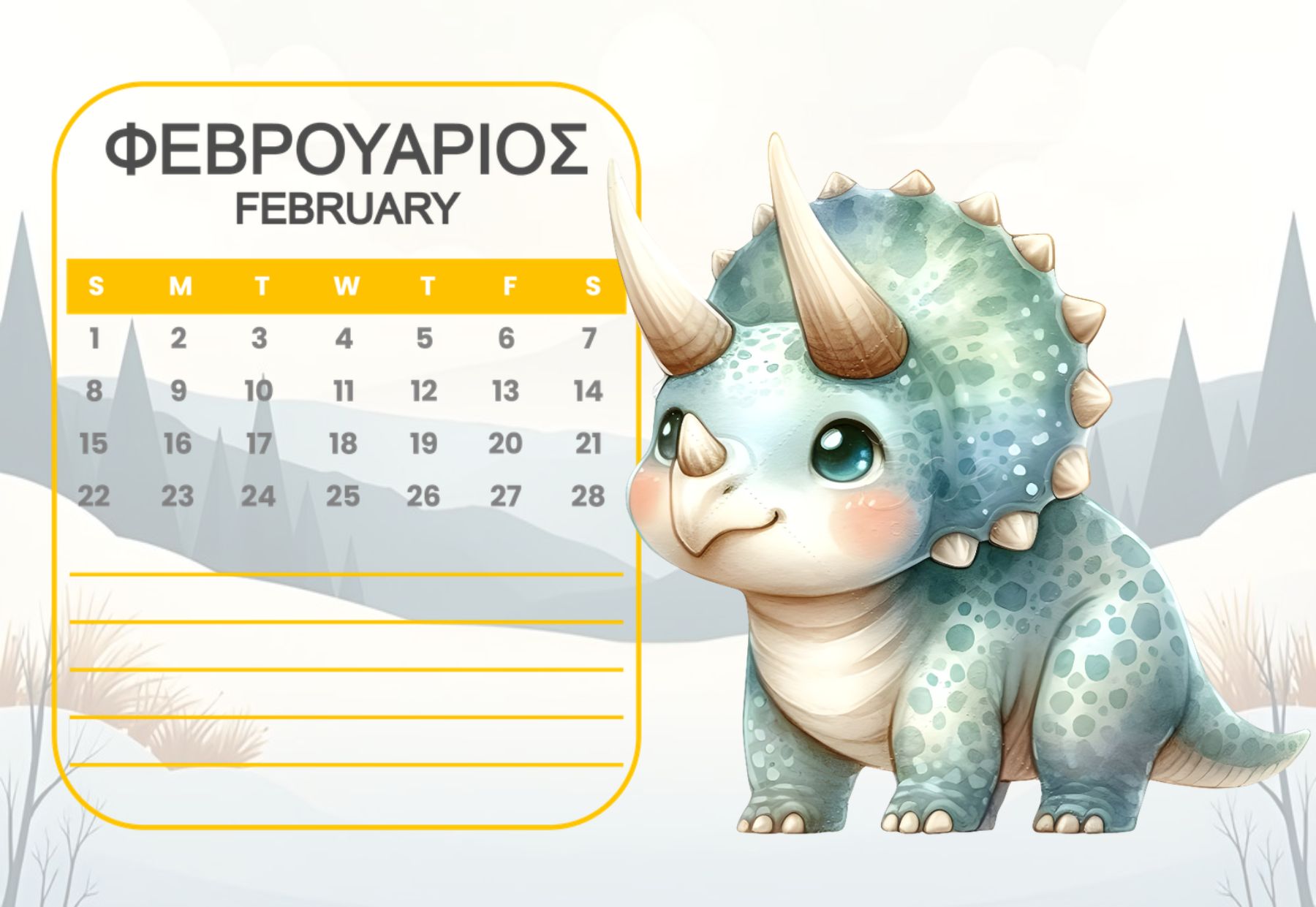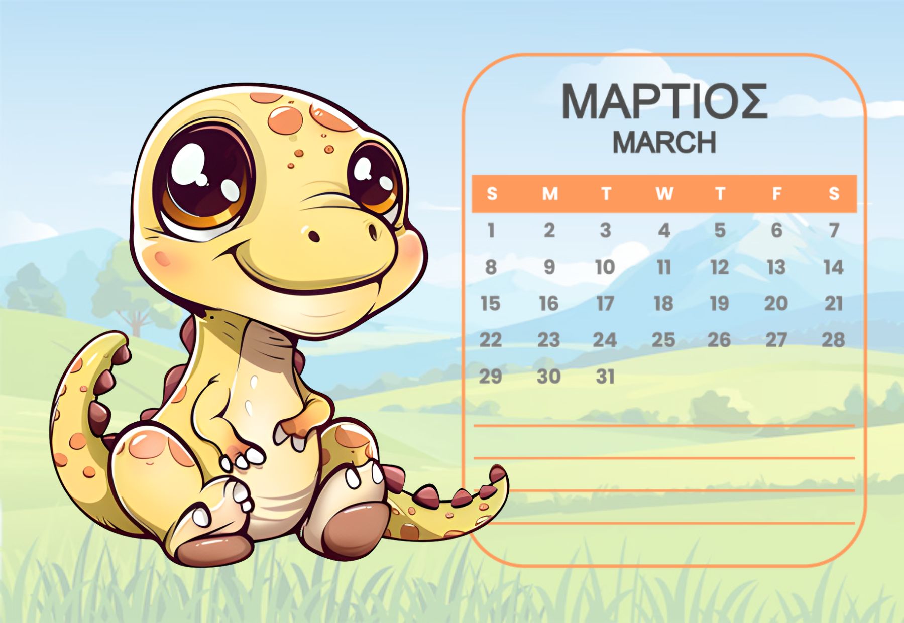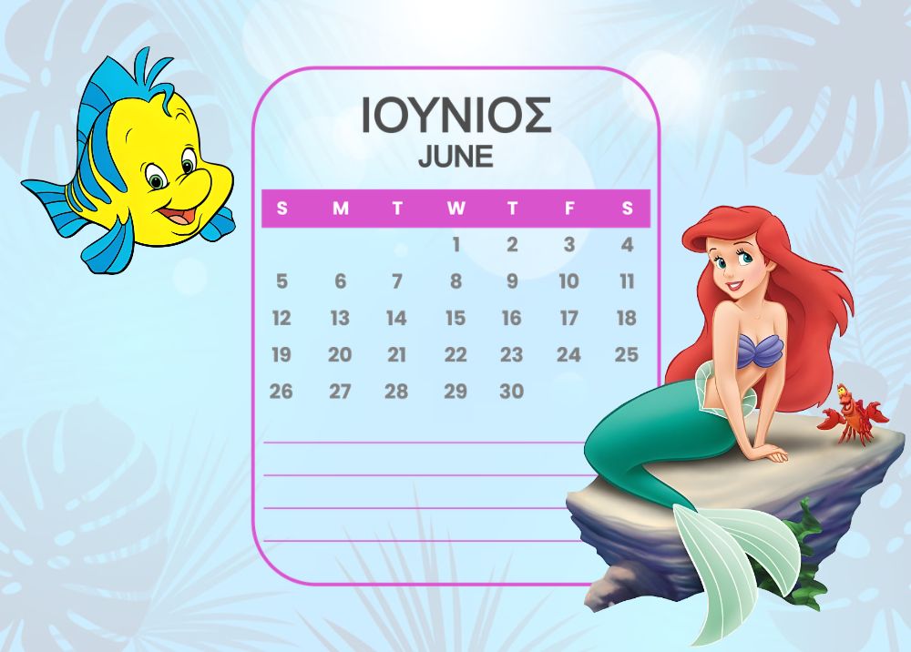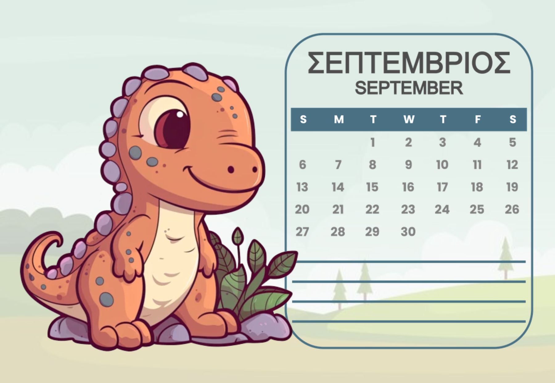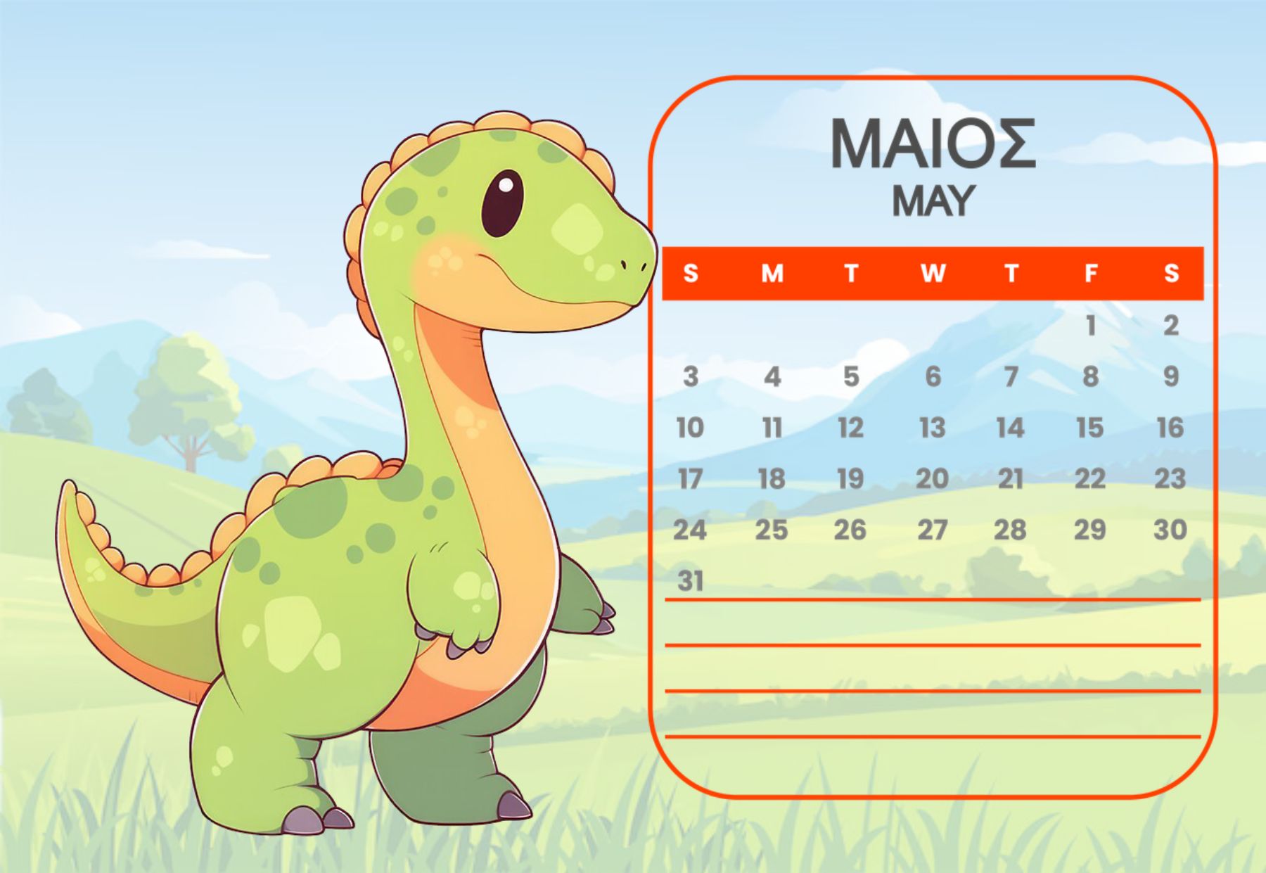 Horizontal Calendar One page