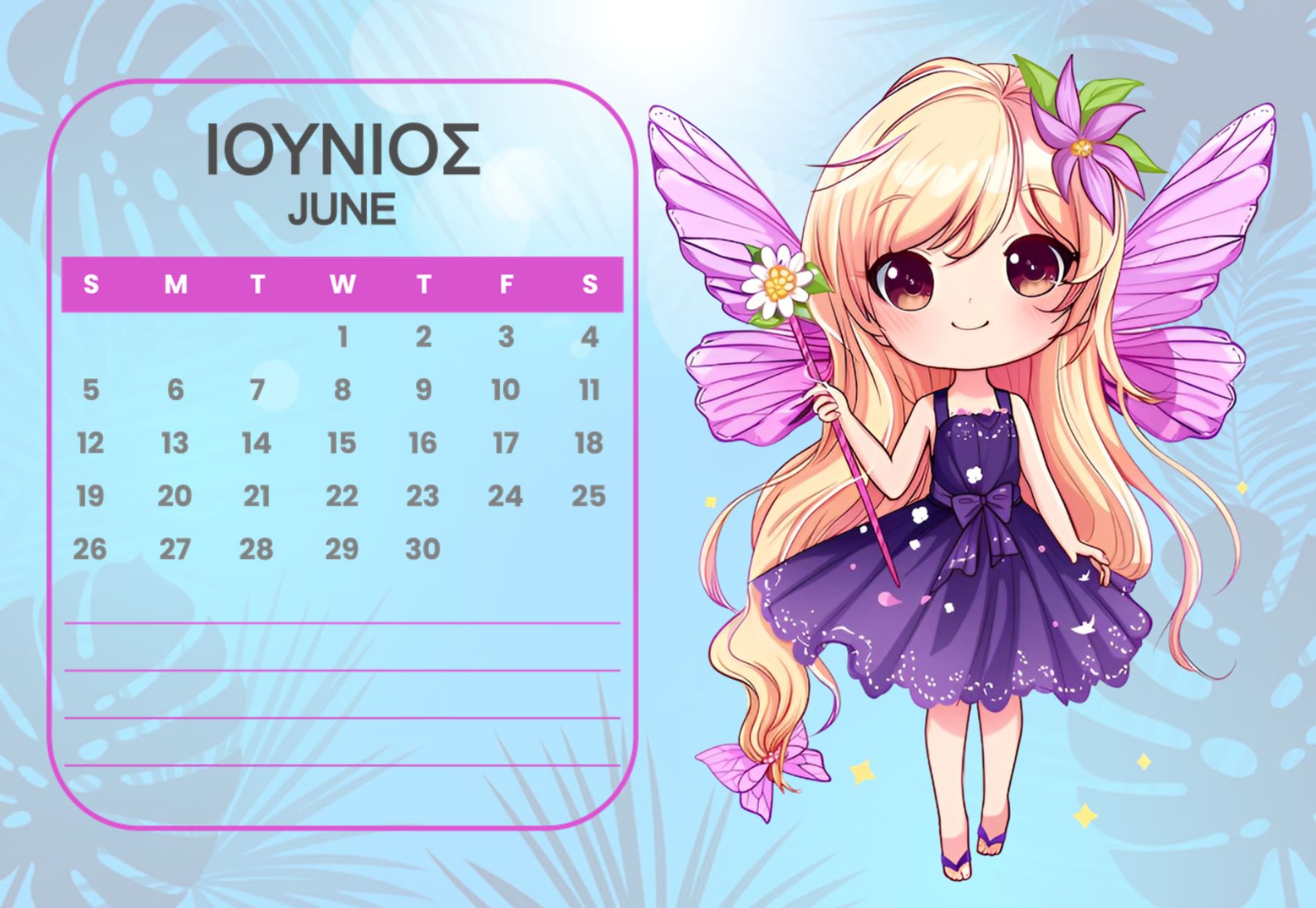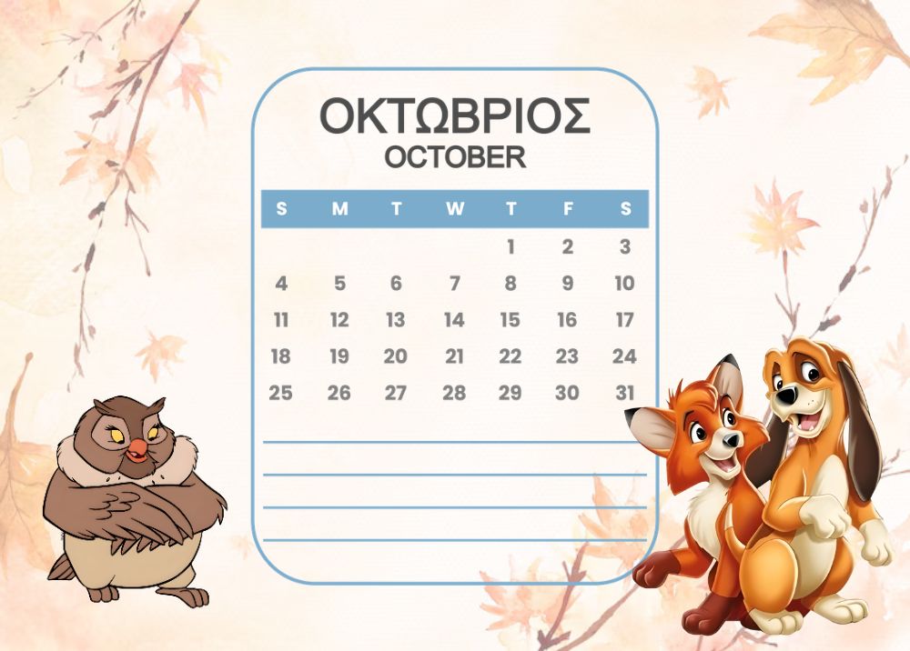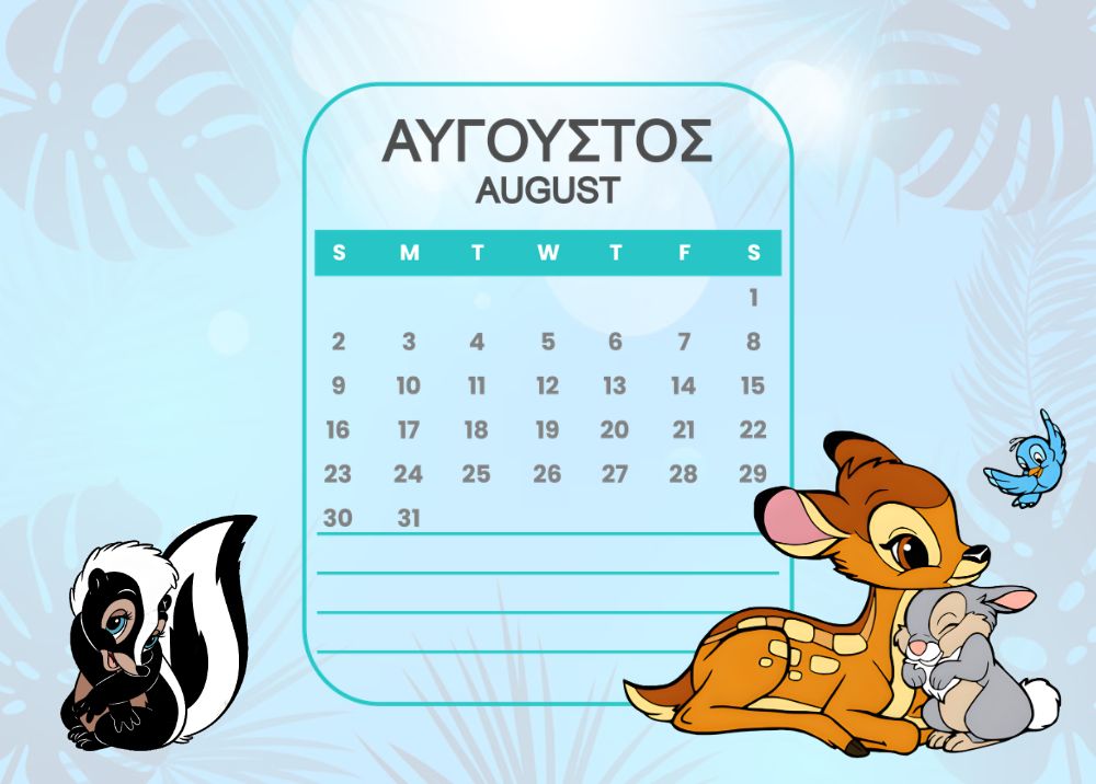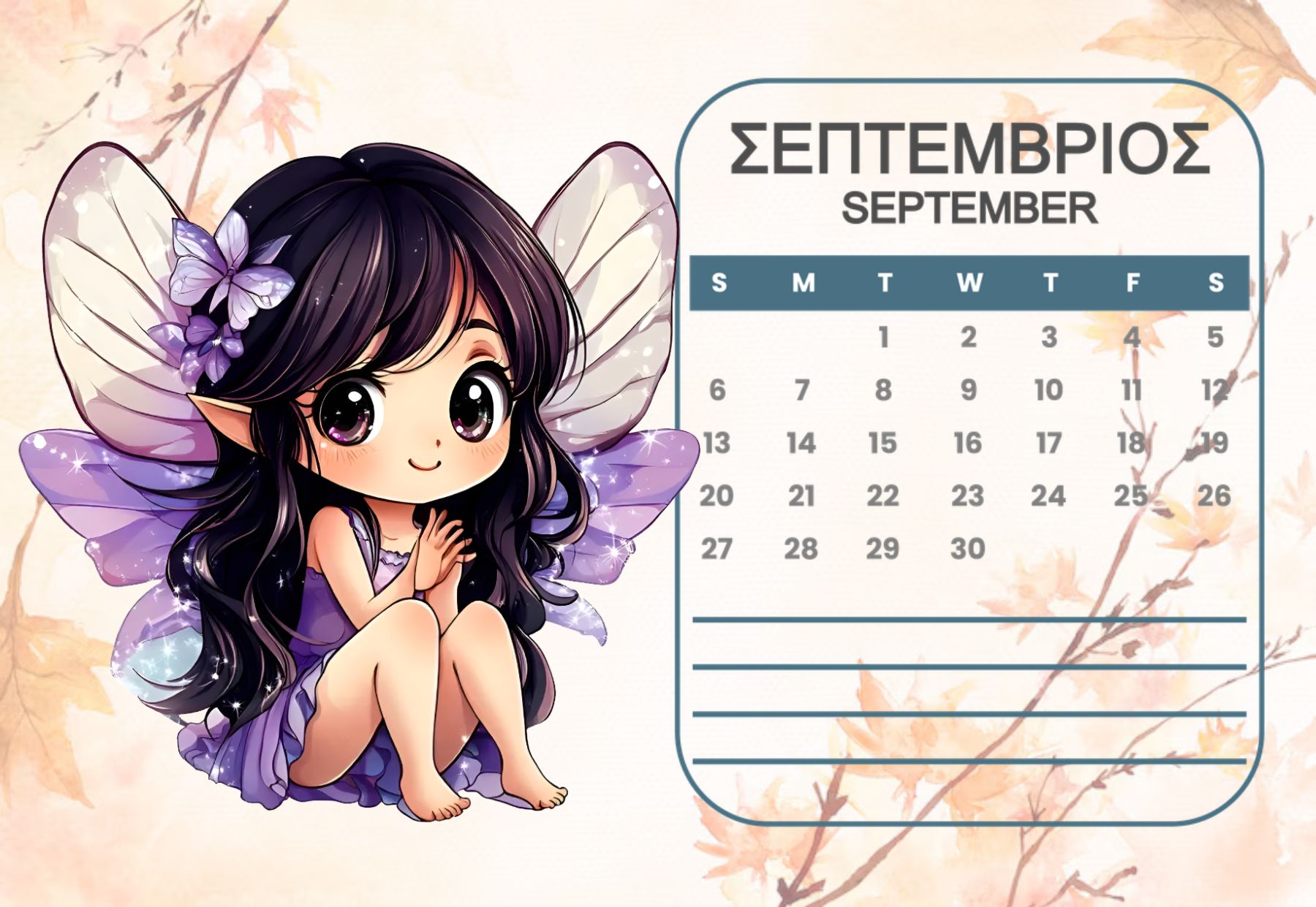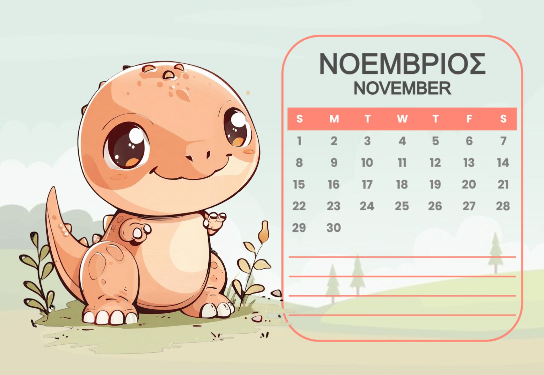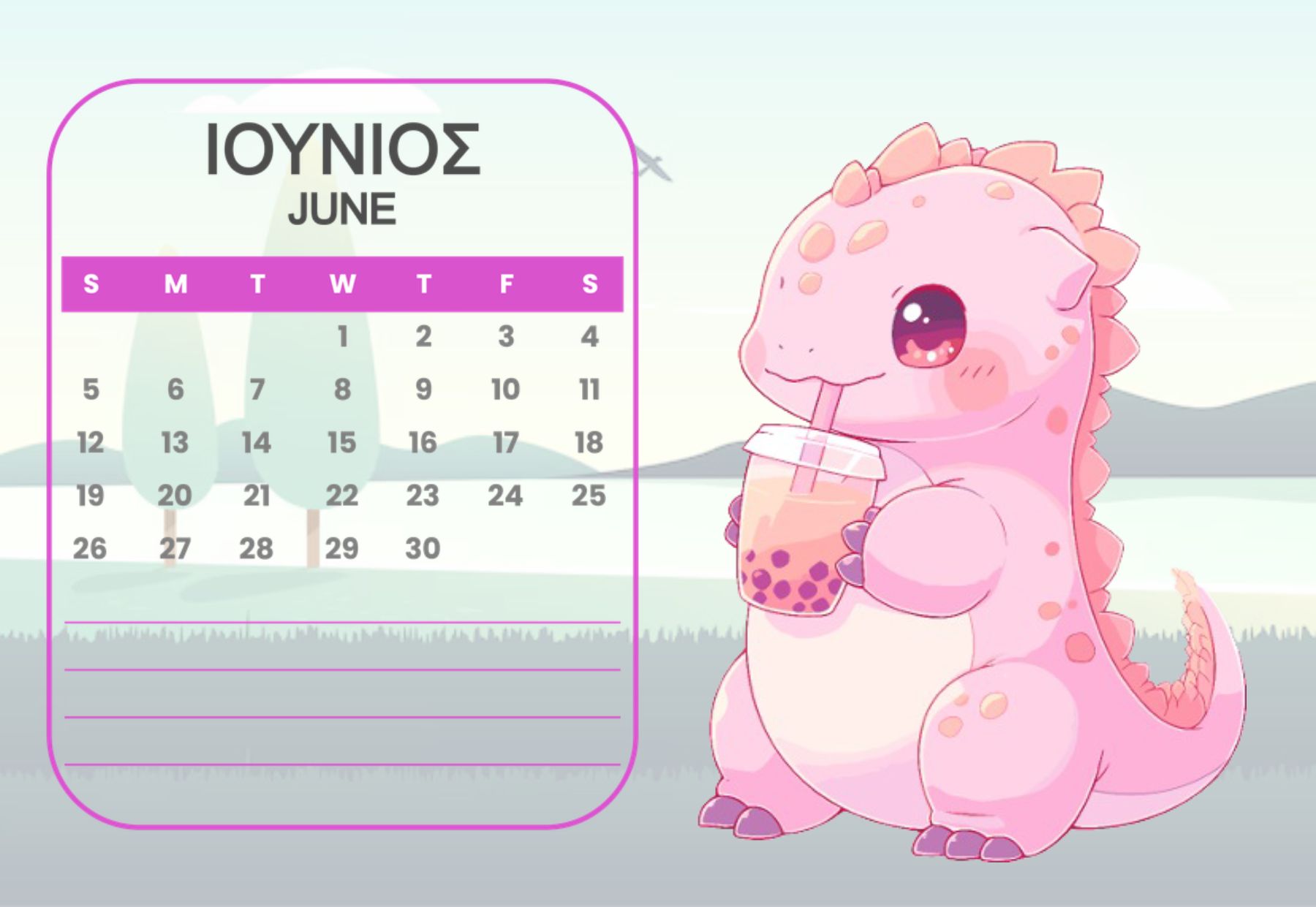 Horizontal Calendar One page