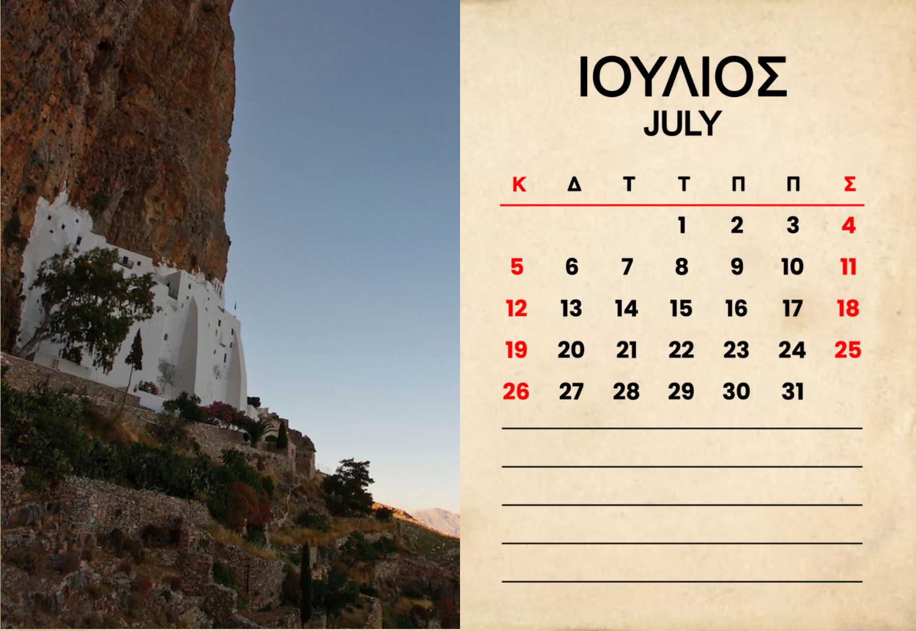 Horizontal Wall Calendar