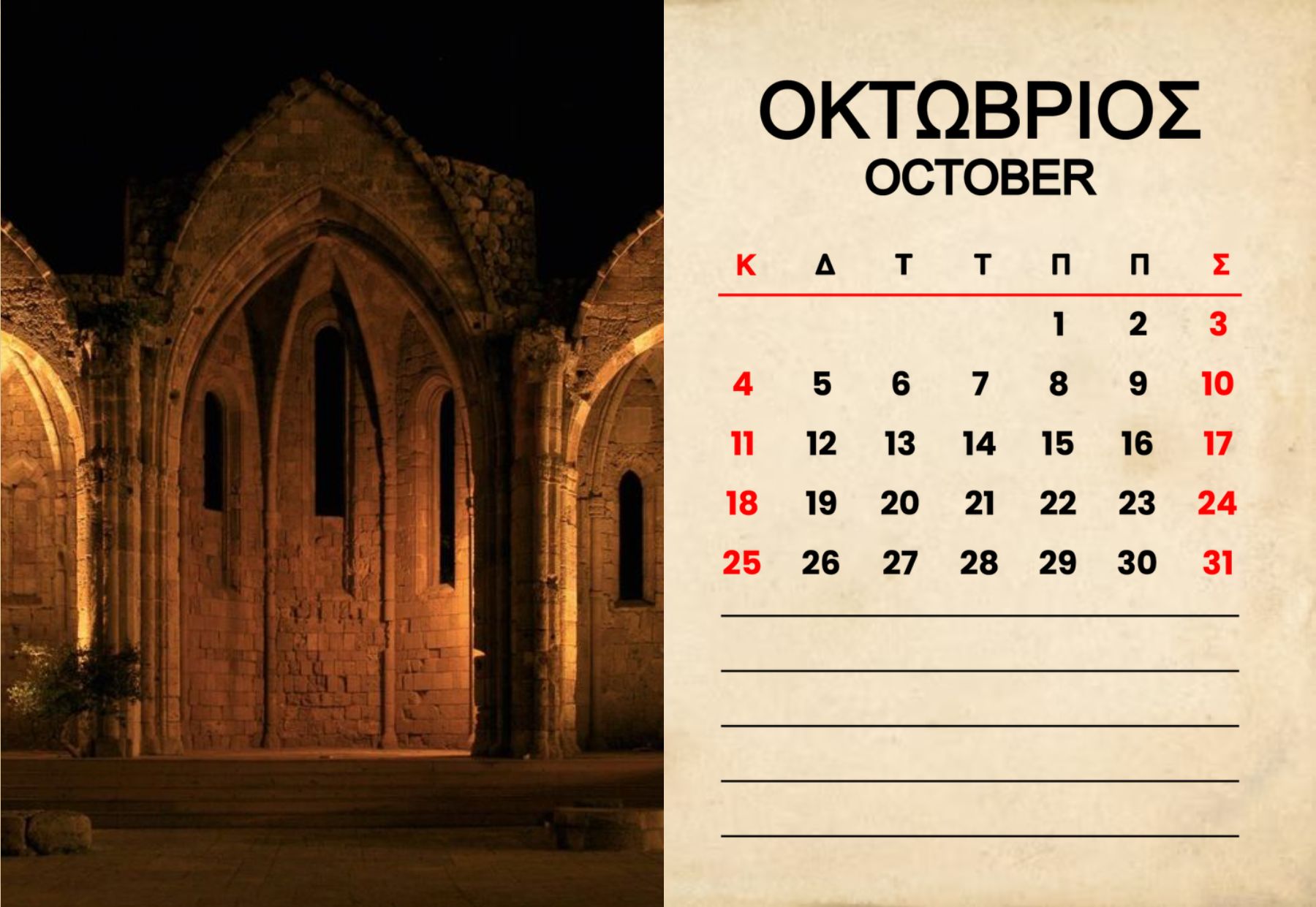 Vertical Calendar One page