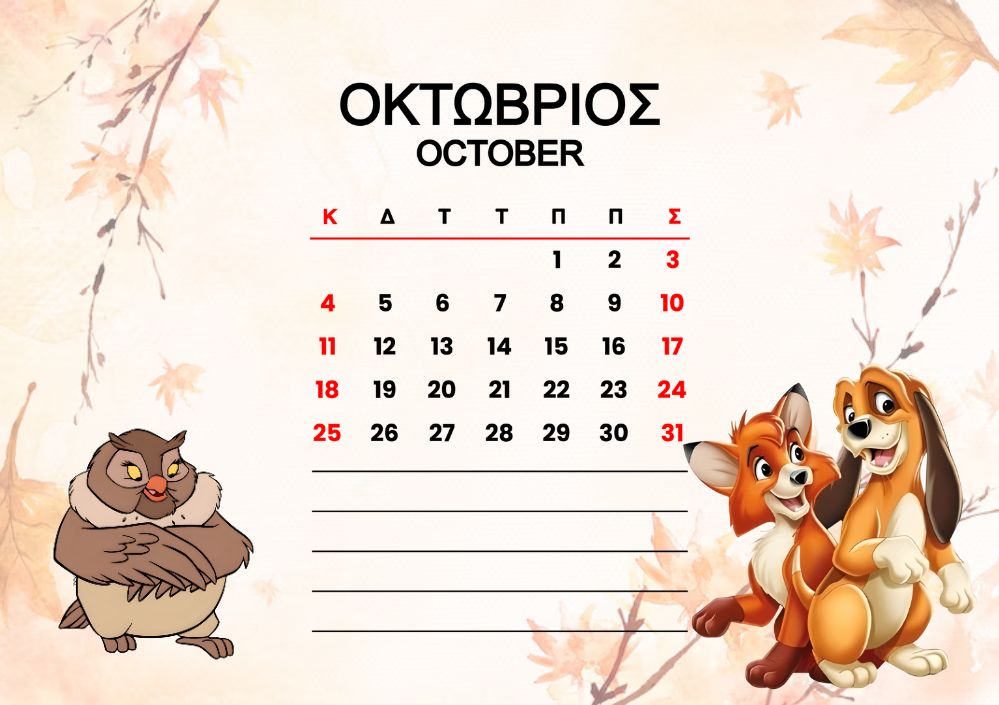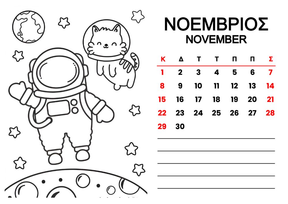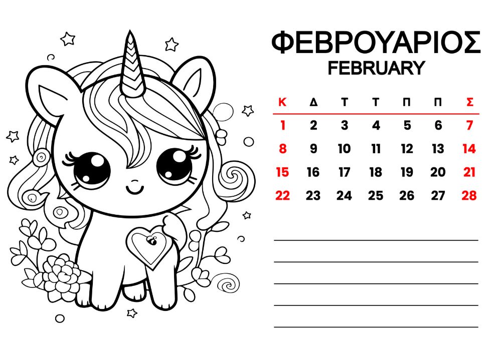 Horizontal Calendar One page